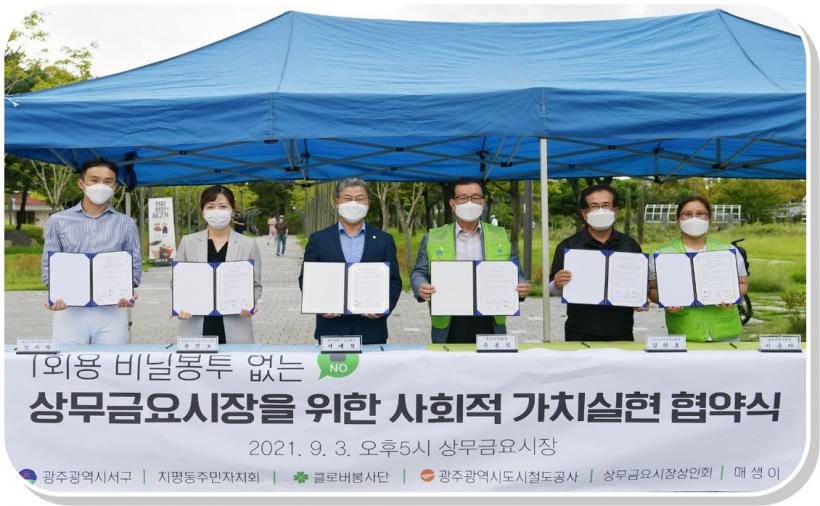 [°ø°£´º½º = ±è¼ö±Ù±âÀÚ] ±¤ÁÖ ¼±¸(±¸Ã»Àå ¼´ë¼®)°¡ Áö³ 3ÀÏ »ó¹«±Ý¿ä½ÃÀå¿¡¼ Ä¡Æòµ¿ÁÖ¹ÎÀÚġȸ(ȸÀå ÁÖµ¿½Ä), Ŭ·Î¹öºÀ»ç´Ü(´ÜÀå ÀÌÀº¾Æ)°ú ÇÔ²² ±âÈÄÀ§±â´ëÀÀ ÀÚ¿ø¼øÈ¯ Ȱµ¿¿¡ ´ëÇÏ¿© ¾²·¹±â ¾ø´Â Áö¿ªÇà»ç¿¡ »óÈ£Çù·ÂÀ» ¾à¼ÓÇÏ´Â Çù¾à½ÄÀ» °³ÃÖÇß´Ù.