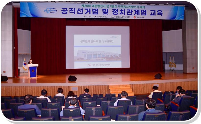 [°ø°£´º½º = ±è¼ö±Ù±âÀÚ] ±¤ÁÖ±¤¿ª½Ã´Â 9ÀÏ ¿ÀÀü ½Ãû ´ëȸÀǽǿ¡¼ ³»³â ½Ç½ÃµÇ´Â Á¦20´ë ´ëÅë·É¼±°Å(2022.3.9.)¿Í Á¦8ȸ Àü±¹µ¿½ÃÁö¹æ¼±°Å(2022.6.1.)¿¡ ´ëºñÇØ ½Ãû °øÁ÷ÀÚ¸¦ ´ë»óÀ¸·Î ÇöÀå ¹× ¿Â¶óÀÎÀ¸·Î ¡®°øÁ÷¼±°Å¹ý ±³À°¡¯À» ½Ç½ÃÇß´Ù.