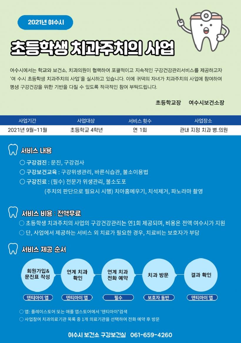 ¡®ÃʵîÇлý Ä¡°úÁÖÄ¡ÀÇ »ç¾÷¡¯Àº ¿©¼ö½Ã¿Í ±³À°Áö¿øÃ», Ä¡°úÀÇ»çȸ 3°³ ±â°üÀÌ Çù·ÂÇØ ¿µ±¸ Ä¡¾Æ ¹è¿ÀÌ ¿Ï¼ºµÇ´Â ½Ã±â¿¡ ¾î¸°ÀÌÀÇ ÃæÄ¡ ¿¹¹æ°ú Ä¡¾Æ °Ç°À» À§ÇÑ ÀÇ·áºñ¸¦ Áö¿øÇÏ´Â »ç¾÷ÀÌ´Ù.