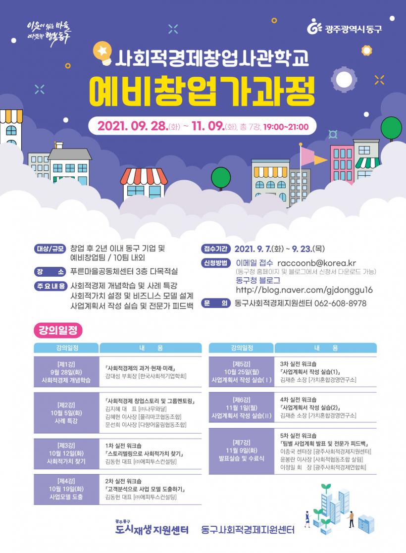 [°ø°£´º½º = ±è´ë¿µ±âÀÚ] ±¤ÁÖ µ¿±¸(±¸Ã»Àå ÀÓÅÃ)´Â »çȸÀû°æÁ¦ »ç¾÷¸ðµ¨ ¹ß±¼ ¹× â¾÷Áö¿ø ¿¬°è¸¦ À§ÇÑ ¡®»çȸÀû°æÁ¦Ã¢¾÷»ç°üÇб³ ¿¹ºñâ¾÷°¡°úÁ¤¡¯ ¼ö°»ýÀ» ¿À´Â 23ÀϱîÁö ¸ðÁýÇÑ´Ù°í ¹àÇû´Ù.