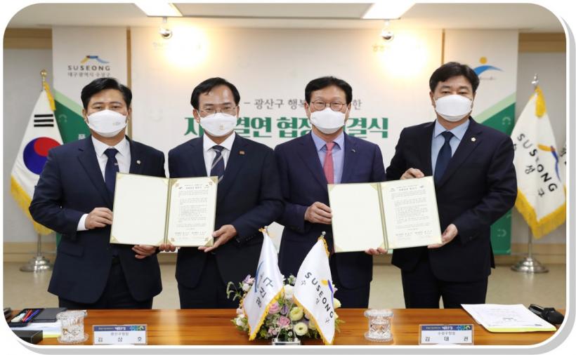 ±¤»ê±¸´Â 9ÀÏ ´ë±¸ ¼ö¼º±¸¸¦ ¹æ¹®ÇÏ¿© ¡®Çູµ¿¸Í ÀڸŰῬ¡¯ Çù¾à½ÄÀ» °¡Á³´Ù. Áö¿ª»ó»ý ÆÄÆ®³Ê·Î¼ ù¹ßÀ» ³»µðµò °ÍÀ¸·Î, À̹ø Çù¾àÀ¸·Î ¾ç ±â°üÀº ±¤»ê±¸¿Í ¼ö¼º±¸ ÁֹΠÇູ°ú »óÈ£ ¹ßÀüÀ» À§ÇÑ Çù·Â ü°è¸¦ ±¸ÃàÇÑ´Ù.