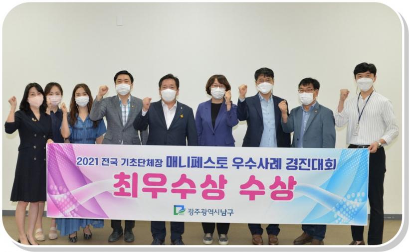 [°ø°£´º½º = ±è¼ö±Ù±âÀÚ] ±èº´³» ±¤ÁÖ ³²±¸Ã»ÀåÀÌ ´õºÒ¾î »ç´Â °øµ¿Ã¼¸¦ À§ÇØ °¥µîÀ¸·Î ¾ó·èÁø Ǫ¸¥±æ °ø¿ø¿¡ Åä¿äÀåÅÍ »ç¾÷À» ÃßÁø, Çѱ¹¸Å´ÏÆä½ºÅä½Çõº»ºÎ ÁÖ°ü ¿ÃÇØÀÇ ÃÖ¿ì¼ö Á¤Ã¥ ¼ö»óÀÚ ¸í´Ü¿¡ À̸§À» ¿Ã·È´Ù.