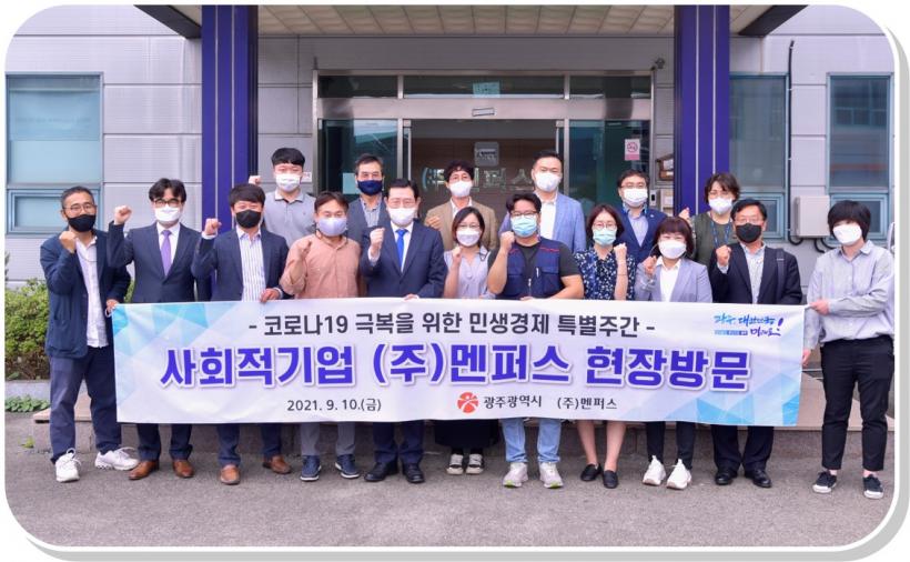 [°ø°£´º½º = ±è¼ö±Ù±âÀÚ] À̿뼷 ±¤ÁÖ±¤¿ª½ÃÀåÀº Áö³ 10ÀÏ ¡®Äڷγª19 ±Øº¹À» À§ÇÑ ¹Î»ý°æÁ¦ Ưº°ÁÖ°£¡¯ µÎ ¹øÂ° ÀÏÁ¤À¸·Î »çȸÀû°æÁ¦ ±â¾÷ÀÎ (ÁÖ)¸àÆÛ½º¸¦ ¹æ¹®ÇØ Á÷¿øµé°ú °£´ãȸ¸¦ °®°í ¾Ö·Î»çÇ×À» ÆÄ¾ÇÇÑ µÚ Á¾»çÀÚµéÀ» °Ý·ÁÇß´Ù.