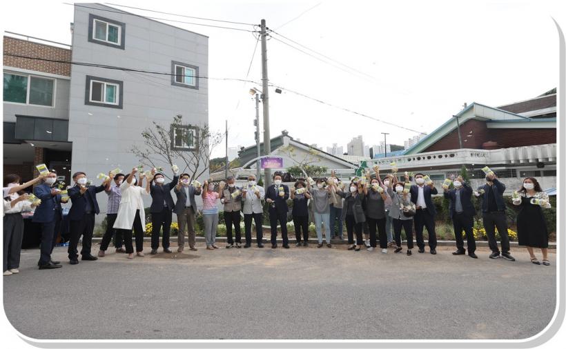 [°ø°£´º½º = ±è´ë¿µ±âÀÚ] ±¤ÁÖ µ¿±¸(±¸Ã»Àå ÀÓÅÃ)´Â Áö¿ø1µ¿ ¸¶À»Á¤¿ø»ç ¾ç¼º±³À° ¼ö·á½ÄÀ» °³ÃÖÇϰí, À̵éÀÇ Á¹¾÷ÀÛǰÀ¸·Î ¡®È¿ùÀÇ Á¤¿ø(²É À§¿¡ ºñÄ¡´Â ´Þºû)¡¯À» Á¶¼ºÇß´Ù°í ¹àÇû´Ù.