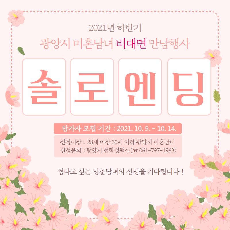 [°ø°£´º½º = ±è´ë¿µ±âÀÚ] ±¤¾ç½Ã´Â ¿À´Â 23ÀÏ °³ÃֵǴ ¹ÌÈ¥³²³à ¸¸³² ÁÖ¼± ¡®±¤¾ç¼Ö·Î¿£µù¡¯ Çà»ç¸¦ À§ÇØ 10¿ù 5~14ÀÏ(10Àϰ£) Âü°¡ Èñ¸ÁÀÚ¸¦ ¸ðÁýÇÑ´Ù.