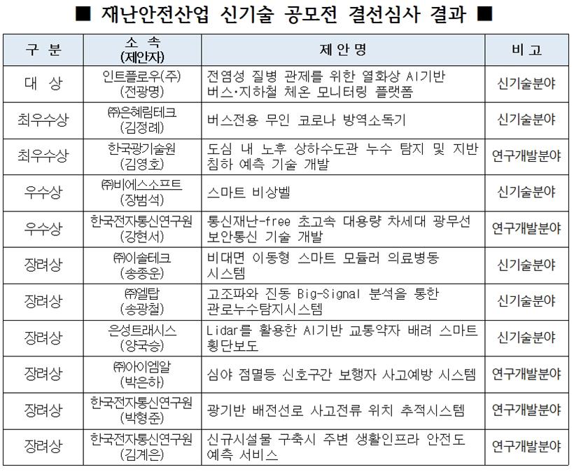 [°ø°£´º½º = ±è¼ö±Ù±âÀÚ] ±¤ÁÖ±¤¿ª½Ã´Â Àç³¾ÈÀü»ê¾÷ºÐ¾ß ½Å±â¼úÀ» º¸À¯ÇÑ Áö¿ª±â¾÷ ¹× ¿¹ºñ â¾÷ÀÚ¸¦ ¹ß±¼・À°¼ºÇϱâ À§ÇÑ ¡®2021 Àç³¾ÈÀü»ê¾÷ ½Å±â¼ú °ø¸ðÀü¡¯ÀÇ °á¼±½É»ç¸¦ Áö³ 9¿ù 30ÀÏ ±è´ëÁßÄÁº¥¼Ç¼¾ÅÍ¿¡¼ °³ÃÖÇß´Ù.