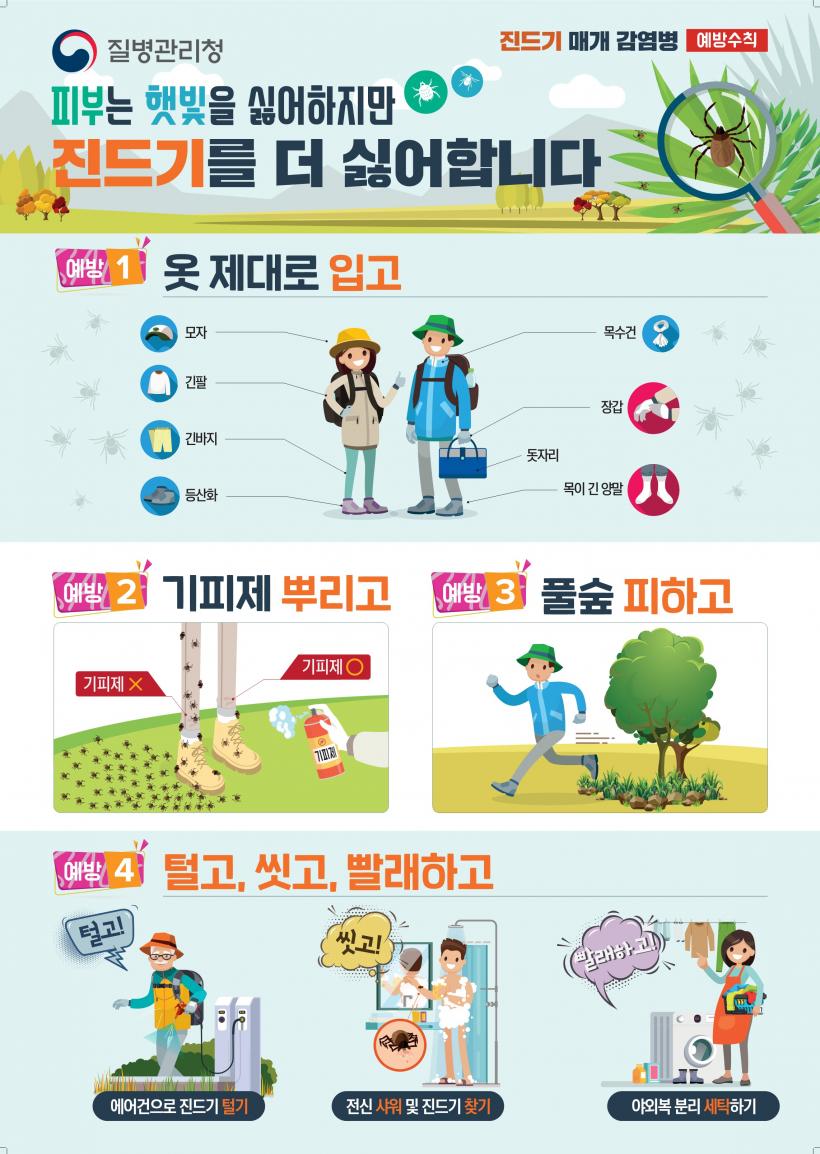 °¨¿°º´À» ¿¹¹æÇϱâ À§Çؼ´Â Ç®½£¿¡¼ÀÇ È°µ¿À» ÃÖ¼ÒÈÇϰí, ¾ß¿ÜȰµ¿ÀÌ ºÎµæÀÌÇÏ´Ù¸é ¿ÊÀ» Á¦´ë·Î °®Ãç ÀÔ°í ±âÇÇÁ¦¸¦ »ç¿ëÇØ¾ß ÇÑ´Ù. ¶ÇÇÑ, ±Í°¡ ÈÄ¿¡´Â ¸öÀ» ±ú²ýÀÌ ¾ÄÀ¸¸é¼ Áøµå±â°¡ ºÙ¾î ÀÖ´ÂÁö È®ÀÎÇϰí, ÀÔ¾ú´ø ¿ÊÀº ÅÐ¾î¼ ¹Ù·Î ¼¼Å¹À» ÇÏ´Â °ÍÀÌ ÁÁ´Ù.