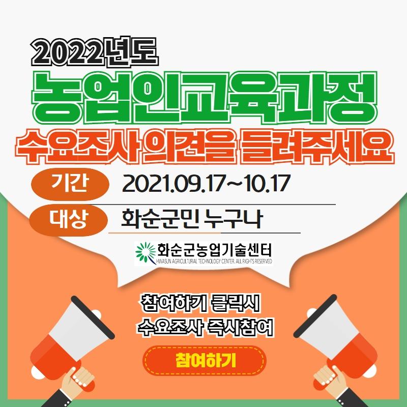 ȼø±ºÀº Àü¹® ³ó¾÷ÀÎ ¾ç¼º°ú ³ó°¡ ¼Òµæ Áõ´ë¸¦ À§ÇÑ ¸ÂÃãÇü ±³À°°úÁ¤ °³¼³À» À§ÇØ ¿À´Â 17ÀϱîÁö ¿Â¡¤¿ÀÇÁ¶óÀÎ ¼ö¿äÁ¶»ç¸¦ ½Ç½ÃÇÑ´Ù°í ¹àÇû´Ù.