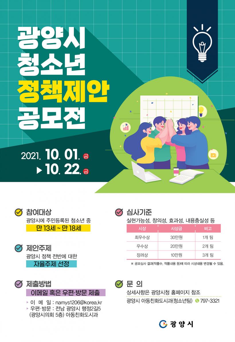 [°ø°£´º½º = ±è´ë¿µ±âÀÚ] ±¤¾ç½Ã´Â Áö¿ª ³» û¼Ò³âÀÇ ½ÃÁ¤ Âü¿©±âȸ¸¦ È®´ëÇÏ°í ½Ã Á¤Ã¥¿¡ ´ëÇÑ ¸ñ¼Ò¸®¸¦ µè±â À§ÇØ ±¤¾ç½Ã¿¡ °ÅÁÖÇÏ´Â ¸¸ 13~18¼¼ û¼Ò³âÀ» ´ë»óÀ¸·Î ¡®±¤¾ç½Ã û¼Ò³â Á¤Ã¥Á¦¾È °ø¸ð¡¯¸¦ ½Ç½ÃÇÑ´Ù.