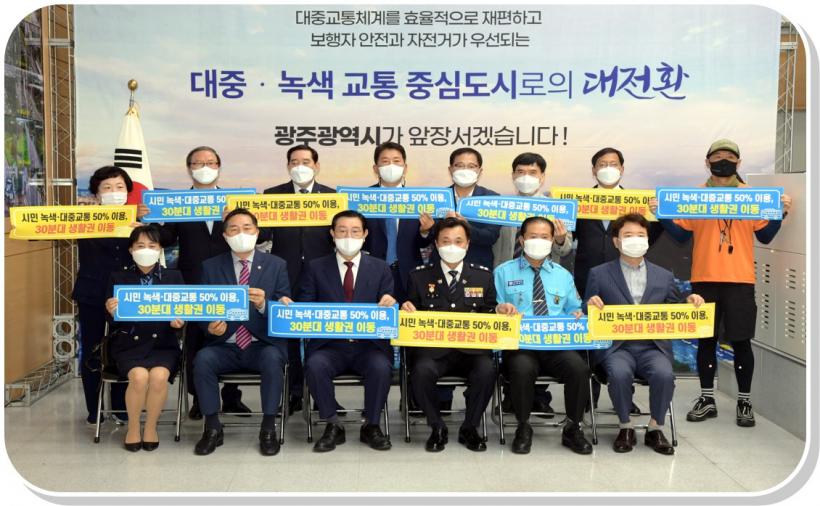 ±¤Áֽô À̸¦ ½ÇÇöÇϱâ À§ÇØ ¡®ºü¸£°í ¾ÈÀüÇÏ°í Æí¸®ÇÑ ±¤ÁÖ±³Åë 5030¡¯À» ºñÀüÀ¸·Î ¼³Á¤ÇÏ°í ½Ã¹Î 50%°¡ ´ëÁß‧³ì»ö±³ÅëÀ» ÀÌ¿ëÇϰí, 30ºÐ´ë ÁÖ¿ä »ýȰ±Ç À̵¿À» ÇÙ½É ¸ñÇ¥·Î Á¤Çß´Ù.