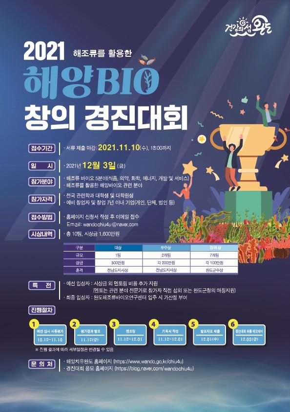 [°ø°£´º½º = ±è¼ö±Ù±âÀÚ] ¿Ïµµ±º(±º¼ö ½Å¿ìö)Àº ÇØÁ¶·ù¸¦ Ȱ¿ëÇÑ ÇØ¾ç¹ÙÀÌ¿À»ê¾÷ ºÐ¾ßÀÇ ¾ÆÀ̵ð¾î, ±â¼ú·Â µîÀ» ¹ÙÅÁÀ¸·Î ÇÑ Ã¢¾÷ ¾ÆÀÌÅÛÀ» ¹ß±¼¡¤Áö¿øÇϱâ À§ÇØ ¡®Á¦1ȸ ¿Ïµµ ÇØ¾ç¹ÙÀÌ¿À âÀÇ °æÁø´ëȸ¡¯¸¦ °³ÃÖÇÑ´Ù.