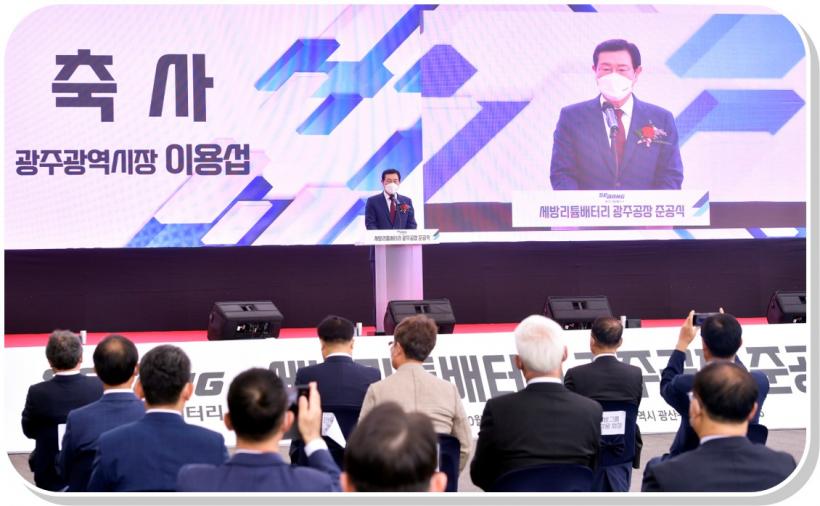 | À̿뼷 ±¤ÁÖ±¤¿ª½ÃÀåÀÌ 13ÀÏ ¿ÀÈÄ ±¤»ê±¸ Æòµ¿2Â÷»ê¾÷´ÜÁö¿¡¼ ¿¸° ¼¼¹æ¸®Æ¬¹èÅ͸®¢ß 'Àü±âÂ÷ ¹èÅ͸®ÆÑ °øÀå Áذø½Ä'¿¡ Âü¼®ÇØ ÀÌ»ó¿õ ¼¼¹æ±×·ì ȸÀå, ±è»ïÈ£ ±¤»ê±¸Ã»Àå, Á¶¼®È£ ±¤ÁÖ½ÃÀÇȸ ºÎÀÇÀå µî ³»ºóµé°ú Áذø½Ä ¼¼¸®¸Ó´Ï¸¦ Çϰí ÀÖ´Ù. |