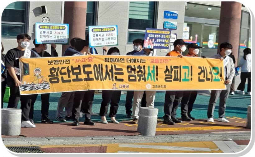 Âü°¡ÀÚµéÀº ±³Åë¾ÈÀü Çö¼ö¸·, ¾î±ú¶ì, È«º¸¹° µîÀ» Ȱ¿ëÇÏ¿© Áֹεé°ú ¿îÀüÀÚ¸¦ ´ë»óÀ¸·Î Ⱦ´Üº¸µµ¿¡¼ ÁÖÀÇÇØ¾ßÇÒ ¡®¸ØÃç¼! »ìÇǰí! °Ç³Ê¿ä!¡¯ ¸¦ ÁßÁ¡ ¾È³»ÇÏ¸é¼ ±³Åë ¾ÈÀü¹®È Á¤Âø¿¡ ¸ðµÎ Âü¿©ÇÒ °ÍÀ» ÁýÁß ¾È³»ÇÏ¿´´Ù.
