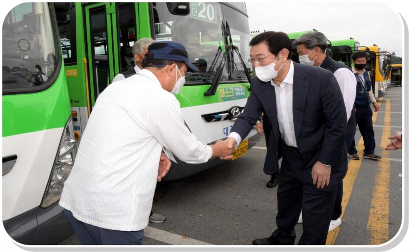 ÀÓµ¿Ãá ÀÌ»çÀåÀº ¡°Äڷγª19 Àå±âÈ·Î ½Ã³»¹ö½º ¾÷°èµµ Èûµç »óȲÀÌÁö¸¸ ±¤Áֽð¡ Áö³ÇØ¿¡ ÀÌ¾î ¿ÃÇØµµ ´ëÁß±³Åë½Ã¼³ ¹æ¿ª´ÜÀ» ÅëÇØ ½Ã³»¹ö½º¿Í Â÷°íÁö µî ½Ã¼³ ¹æ¿ªÀ» Áö¿øÇØÁà °¨»çÇÏ´Ù¡±°í ¸»Çß´Ù.À̿뼷 ½ÃÀåÀº ¡°Ã¶ÀúÇÑ ¹æ¿ªÀ¸·Î ½Ã¹ÎµéÀÌ ¾È½ÉÇÏ°í ½Ã³»¹ö½º¸¦ ÀÌ¿ëÇϵµ·Ï ³ë·ÂÇØÁà °¨»çÇÏ´Ù¡±¸ç ¡°ÇöÀåÀÇ »ý»ýÇÑ ¸ñ¼Ò¸®¸¦ µè°í ¼ÒÅëÇϸç Äڷγª19 ±Øº¹¿¡ ´õ¿í Èû¾²°Ú´Ù¡±°í ¸»Çß´Ù.