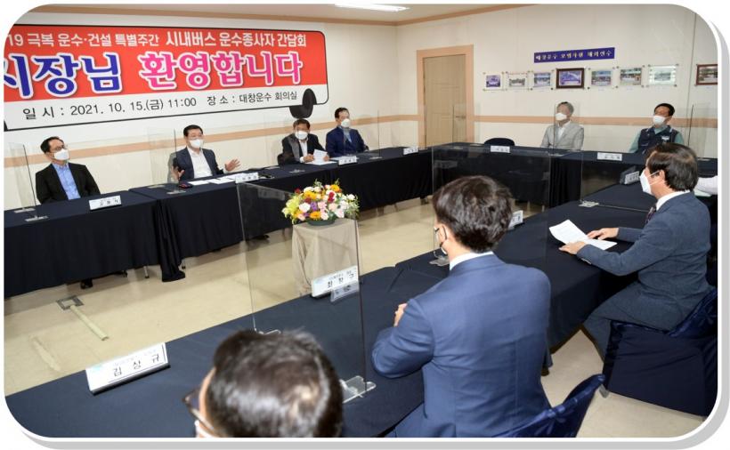 [°ø°£´º½º = ±è¼ö±Ù±âÀÚ] À̿뼷 ±¤ÁÖ±¤¿ª½ÃÀåÀÌ 15ÀÏ ½Ã³»¹ö½º ¾÷ü´ëÇ¥ ¹× ¿î¼öÁ¾»çÀÚ¿Í ÇöÀå °£´ãȸ¿¡ Âü¼®ÇØ ½Ã³»¹ö½º ¾÷°èÀÇ Çö¾È¿¡ ´ëÇØ ÀǰßÀ» ³ª´³´Ù.