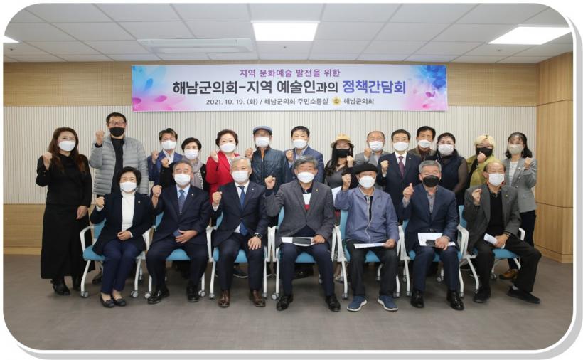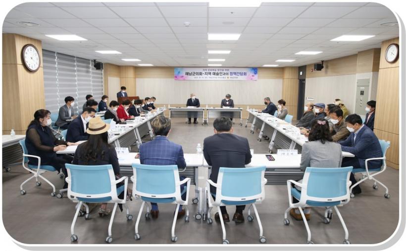 [°ø°£´º½º = ±è¼ö±Ù±âÀÚ] ÇØ³²±ºÀÇȸ(ÀÇÀå ±èº´´ö)°¡ Çѱ¹¿¹ÃÑ ÇØ³²Áöȸ ÀÓ¿øµé°ú Áö¿ª ¿¹¼úÀεéÀ» ÃÊÃ»ÇØ ¿¹¼úÀεéÀÇ Ã¢ÀÛȰµ¿À» Áö¿øÇÏ´Â ¹æ¾È¿¡ ´ëÇØ Á¤Ã¥ °£´ãȸ¸¦ °³ÃÖÇÏ¿© ÇØ°á¹æ¾ÈÀ» ¸ð»öÇÏ´Â ½Ã°£À» °¡Á³´Ù.