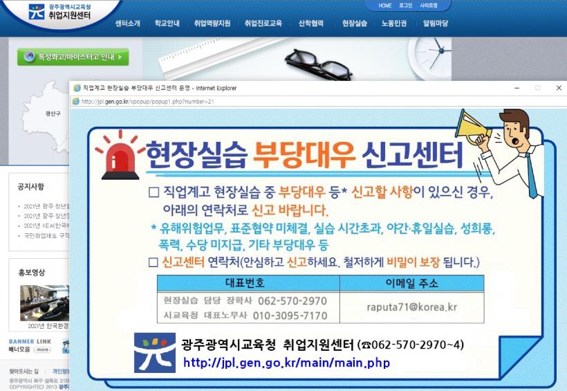 [°ø°£´º½º = ±è¼ö±Ù±âÀÚ] ±¤Áֽñ³À°Ã»ÀÌ Á÷¾÷°è°í ÇöÀå½Ç½À»ý ¾ÈÀü ¹× ±ÇÀÍ º¸È£¸¦ À§ÇØ ¡®ÇöÀå½Ç½À ºÎ´ç´ë¿ì ½Å°í¼¾ÅÍ¡¯¸¦ ¿î¿µÇÑ´Ù.