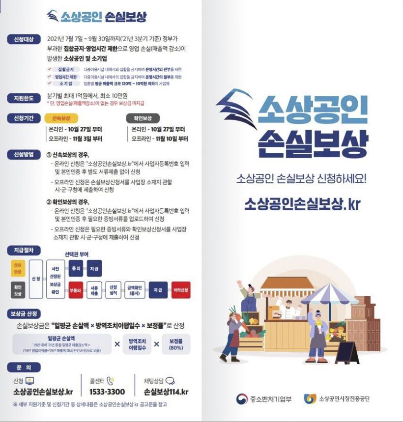 ÁýÇÕ±ÝÁö¡¤¿µ¾÷Á¦ÇÑ¿¡ ÇØ´çÇÏ´Â ¼Ò»ó°øÀÎÀº ¼Ò»ó°øÀμսǺ¸»ó »çÀÌÆ®(¼Ò»ó°øÀμսǺ¸»ó.kr)¸¦ ÅëÇØ ¿À´Â 27ÀϺÎÅÍ ¼Õ½Çº¸»ó±ÝÀ» È®ÀΡ¤½ÅûÇÒ ¼ö ÀÖÀ¸¸ç, ¿ÀÇÁ¶óÀÎÀº 11¿ù 3ÀϺÎÅÍ ¼øÃµ½Ã Áö¿ª°æÁ¦°ú ¼Õ½Çº¸»ó±Ý Áö¿øÃ¢±¸¿¡¼ ½ÅûÇÒ ¼ö ÀÖ´Ù.