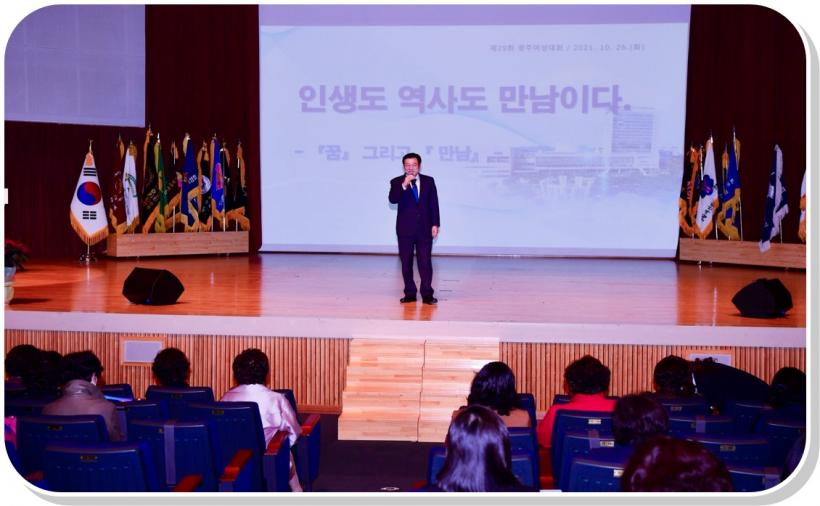 [°ø°£´º½º = ±è¼ö±Ù±âÀÚ] ¡®Á¦29ȸ ±¤ÁÖ¿©¼º´ëȸ¡¯°¡ 26ÀÏ ¿ÀÈÄ ±¤ÁÖ½Ãû ´ëȸÀǽǿ¡¼ ¡®º¯È¸¦ ²ÉÇÇ¿ì°Ô ÇÏ´Â ¿©¼º ¸®´õ½Ê¡¯À̶ó´Â ÁÖÁ¦·Î ¿·È´Ù.