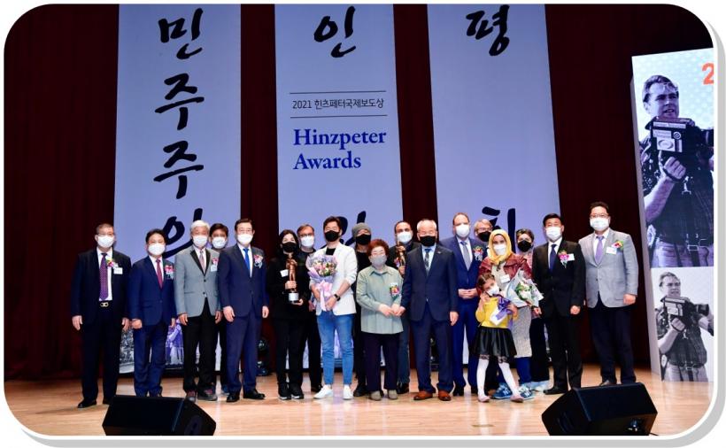 ÀÌ¾î ¡°¡®ÈùÃ÷ÆäÅÍ ±¹Á¦º¸µµ»ó¡¯ÀÌ ¿À¿ù ±¤ÁÖÁ¤½Å°ú ÇÔ²² ¼¼°è ¹ÎÁÖÁÖÀǸ¦ ¹ßÀü½ÃÄÑ ³ª°¡´Â °è±â°¡ µÇ±æ ±â´ëÇÑ´Ù¡±¸é¼ ¡°¿ì¸® ±¤ÁÖ´Â ¾ÕÀ¸·Îµµ Á¤ÀǸ¦ ÁöÄѳ»´Â ¹ÎÁֽùεé, ÇöÀå¿¡¼ ¿ª»çÀÇ Áø½ÇÀ» ±â·ÏÇÏ´Â ±âÀÚµé°ú ÇÔ²² ÇÒ °ÍÀ̸ç, ¡®ÈùÃ÷ÆäÅÍ ±¹Á¦º¸µµ»ó¡¯ÀÌ ¹ÎÁÖ‧ÀαÇÀÇ °¡Ä¡¸¦ ´ãÀº ´ëÇ¥Àû »óÀ¸·Î ÀÚ¸®¸Å±èÇÒ ¼ö ÀÖµµ·Ï Àû±Ø µÞ¹ÞħÇϰڴ١±°í ¹àÇû´Ù.