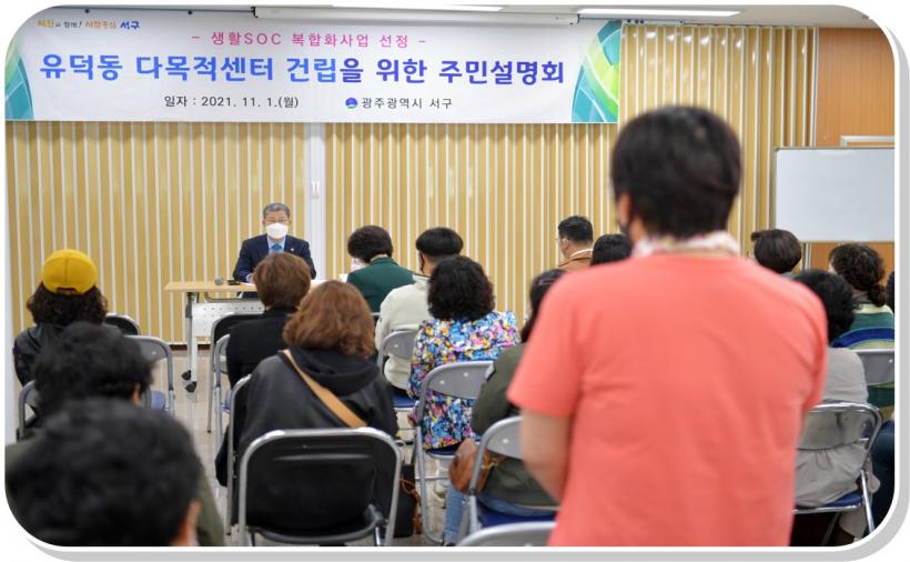 [°ø°£´º½º = ±è¼ö±Ù±âÀÚ] ±¤ÁÖ ¼±¸(±¸Ã»Àå ¼´ë¼®)°¡ Áö³ 1ÀÏ ¾çµ¿°ú À¯´öµ¿ ÁֹΠ°¢ 50¿© ¸íÀ» ´ë»óÀ¸·Î »ýȰSOC º¹ÇÕÈ»ç¾÷ ¼±Á¤¿¡ µû¸¥ ¡®´Ù¸ñÀû¼¾ÅÍ¡¯ °Ç¸³ ÃßÁø¿¡ ´ëÇÑ Áֹμ³¸íȸ¸¦ °³ÃÖÇß´Ù.