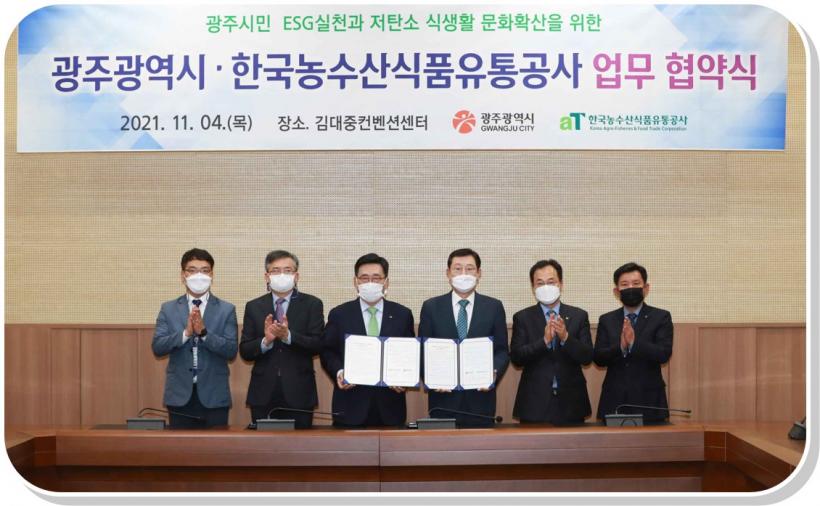 [°ø°£´º½º = ±è¼ö±Ù±âÀÚ] ±¤ÁÖ±¤¿ª½Ã´Â 4ÀÏ ±è´ëÁßÄÁº¥¼Ç¼¾ÅÍ¿¡¼ Çѱ¹³ó¼ö»ê½ÄǰÀ¯Åë°ø»ç(»çÀå ±èÃáÁø)¿Í ±âÈÄÀ§±â¿¡ µû¸¥ ½Ã¹ÎµéÀÇ ÀνÄÀ» °³¼±Çϰí ź¼ÒÁ߸³ »ýȰ½Çõ µîÀ» ÃËÁøÇϱâ À§ÇÑ ¡®ÄÚ¸®¾Æ ±×¸°Çªµå µ¥ÀÌ¡¯ ¾÷¹«Çù¾àÀ» ü°áÇß´Ù.