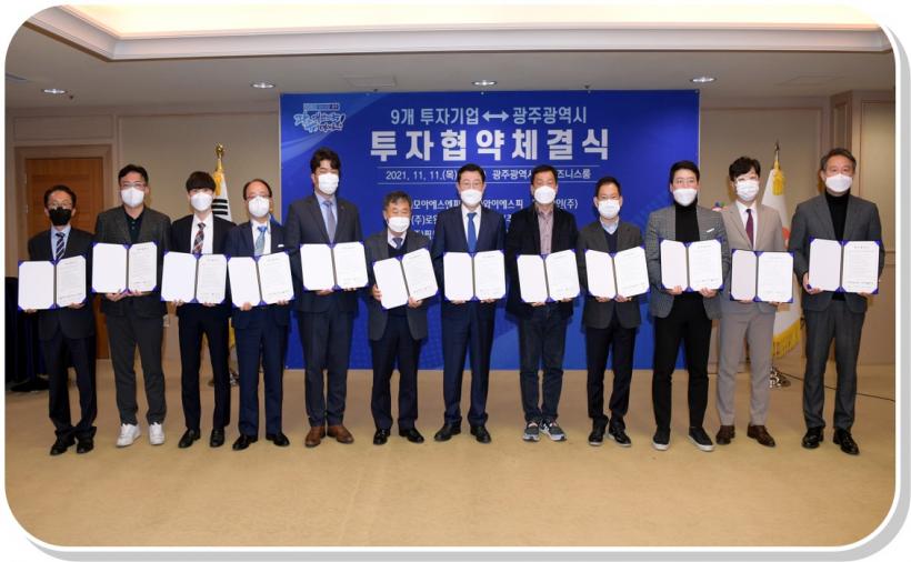 [°ø°£´º½º = ±è¼ö±Ù±âÀÚ] ±¤ÁÖ±¤¿ª½Ã´Â 11ÀÏ ½Ãû ºñÁî´Ï½º·ë¿¡¼ ±¹³» 9°³ ±â¾÷°ú ÃÑ 573¾ï¿øÀÇ ÅõÀÚ¿Í 340¿©¸í °í¿ëâÃâÀ» À§ÇÑ ÅõÀÚÇù¾à(MOU)À» ü°áÇß´Ù.
