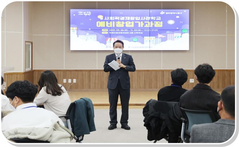 [°ø°£´º½º = ±è´ë¿µ±âÀÚ] ±¤ÁÖ µ¿±¸(±¸Ã»Àå ÀÓÅÃ)´Â Ǫ¸¥¸¶À»°øµ¿Ã¼¼¾ÅÍ¿¡¼ ¡®»çȸÀû°æÁ¦Ã¢¾÷»ç°üÇб³ ¿¹ºñâ¾÷°¡°úÁ¤¡¯ ¼ö·á½ÄÀ» ¼ºÈ²¸®¿¡ °³ÃÖÇß´Ù°í 11ÀÏ ¹àÇû´Ù.