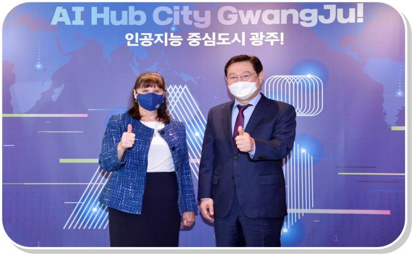 ÀÌ¾î ·¹ÀÌÆÛ ´ë»ç´Â ¡°´ëÇѹα¹ Á¤ºÎÀÇ Åº¼ÒÁ߸³ Á¤Ã¥¿¡ ¸ÂÃá ±¤ÁÖ½ÃÀÇ ÀΰøÁö´É»ê¾÷ Á¤Ã¥¿¡ ´ëÇØ¼µµ µé¾îº¸°í ½Í´Ù¡±¸ç ¡°¾ÕÀ¸·Î Áö¼ÓÀûÀÎ ±³·ù¸¦ ÅëÇØ ±â¼úÁøº¸ÀÇ ±âȸ¸¦ ¸¸µé°í ºÐ¾ßº°·Î Çù·ÂÇÏÀÚ¡±°í ¸»Çß´Ù.