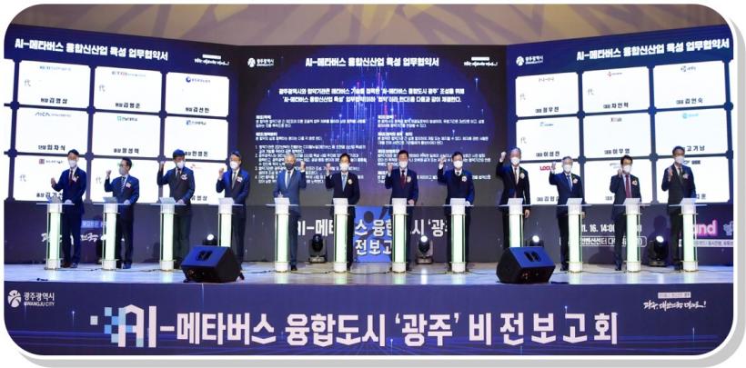 ½Ã´Â 16ÀÏ ±è´ëÁßÄÁº¥¼Ç¼¾ÅÍ¿¡¼ ¡®AI-¸ÞŸ¹ö½º À¶ÇÕµµ½Ã ±¤ÁÖ¡¯ ºñÀüÀ» Á¦½ÃÇϰí, 24°³ ±â°ü¡¤±â¾÷µé°ú ¸ÞŸ¹ö½º À¶ÇսŻê¾÷ »ýŰè Á¶¼º¿¡ »óÈ£ Çù·ÂÇÏ´Â ³»¿ëÀÇ ¾÷¹«Çù¾àÀ» ü°áÇß´Ù.