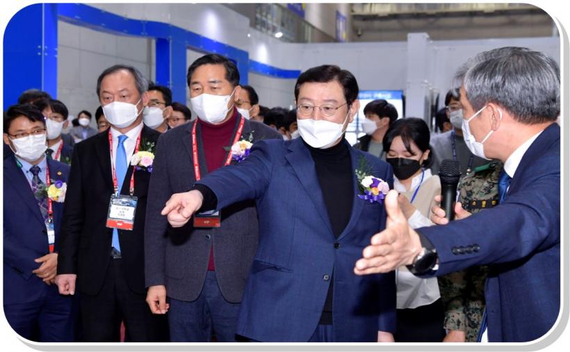 | À̿뼷 ±¤ÁÖ±¤¿ª½ÃÀåÀÌ 18ÀÏ ¿ÀÈÄ ¼±¸ ±è´ëÁßÄÁº¥¼Ç¼¾ÅÍ¿¡¼ ¿¸° '2021 ±¹Á¦ »Ñ¸®»ê¾÷Àü½Ãȸ, ±×¸°Ä«Àü½Ãȸ, IoT°¡Àü·Îº¿¹Ú¶÷ȸ' °³¸·½Ä¿¡ Âü¼®ÇØ ±è¿ëÁý ±¤ÁÖ½ÃÀÇȸ ÀÇÀå, ¼Ò¿µ¹Î À°±º Ư¼öÀü»ç·ÉºÎ »ç·É°ü µî ³»ºóµé°ú Àü½ÃÀåÀ» µÑ·¯º¸°í ÀÖ´Ù. |