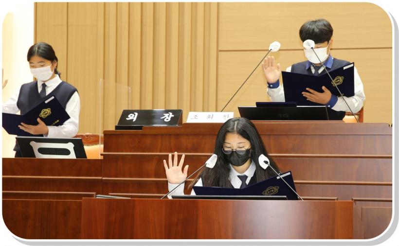 À̹ø¿¡ ÇØ³²±ºÀÇȸ ¾î¸°ÀÌ‧û¼Ò³â ÀÇȸ üÇè±³½Ç ù Å×ÀÌÇÁ¸¦ ²÷Àº ºÏÆòÁßÇб³ Çлý 12¸íÀº ÀÇÀå, ÀÇ¿ø, ¹ßÀÇÀÚ, »ç¹«°úÀå, ÀÇ»çÆÀÀå µî °¢°¢ ¿ªÇÒ ºÐ´ãÀ» ÅëÇØ °³ÀǼ±Æ÷, Áýȸº¸°í, Á÷Á¢ ¸¸µç ¡¸¸éÁö¿ª û¼Ò³âµéÀ» À§ÇÑ ¹®ÈüÀ°½Ã¼³ Àǹ«È¸¦ À§ÇÑ Á¶·Ê¾È¡¹À» °¡Áö°í Á¦¾È¼³¸í, Åä·Ð, Ç¥°áÀ» ÅëÇÑ Àǰá±îÁö ÇÏ´Â µî ½ÇÁ¦ º»È¸ÀÇ »óȲ°ú °°Àº ¸ðÀÇ È¸ÀǸ¦ ÁøÁöÇÏ°Ô ÁøÇàÇß´Ù.