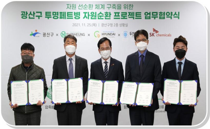 ±¤»ê±¸´Â 25ÀÏ SKÄɹÌÄ®, µÎ»êÀÌ¿£Æ¼, ½ÅÈïÀÚ¿ø, Çö´ëȯ°æ µî 4°³ ±â¾÷°ú Åõ¸íÆäÆ®º´ °íǰÁú ÀçȰ¿ëÀ» À§ÇÑ ¾÷¹«Çù¾àÀ» ü°áÇß´Ù.