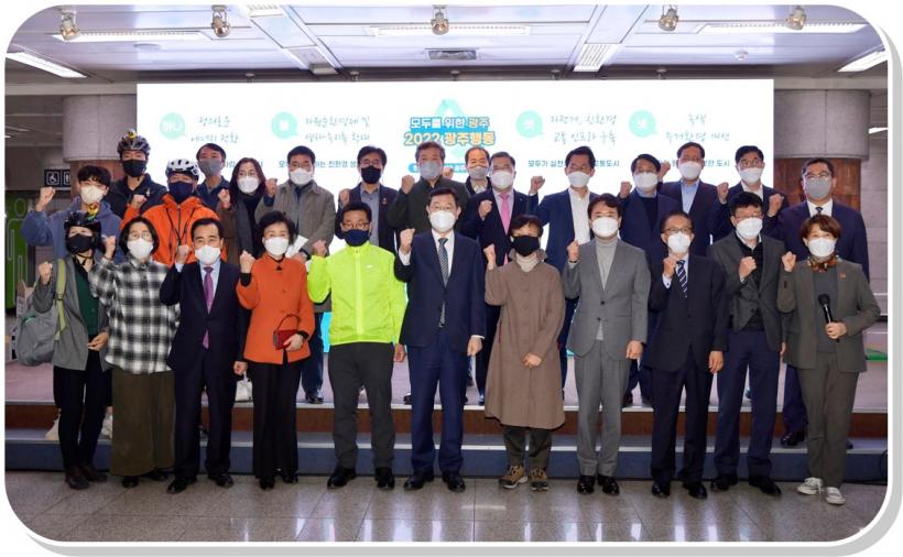 À̿뼷 ½ÃÀåÀº ¡°¡®2022 ±¤ÁÖÇൿ°èȹ¡¯Àº ±âÈÄÀ§±â¿¡ ¼±Á¦ÀûÀ¸·Î ´ëÀÀÇÏ¸é¼ Àΰ£°ú ÀÚ¿¬ÀÌ °øÁ¸ÇÏ´Â µµ½Ã ´ëÀüȯÀÇ ½ÃÀÛÁ¡ÀÌ µÉ °ÍÀÌ´Ù¡±°í °Á¶ÇÏ°í ¡°±¤ÁÖ°øµ¿Ã¼ÀÇ ¿ª·®À» ¸ð¾Æ Ã¥ÀÓ°¨ ÀÖ°Ô 2045 ź¼ÒÁ߸³ ¿¡³ÊÁöÀÚ¸³µµ½Ã¸¦ ¸¸µé¾î°¡°Ú´Ù¡±°í ¹àÇû´Ù.
