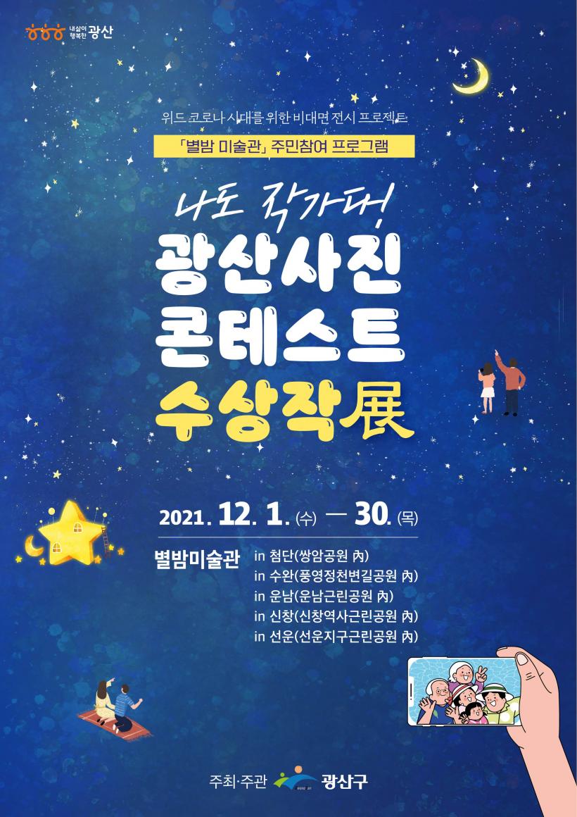 ±¤»ê±¸¿¡ µû¸£¸é, 12¿ù1ÀϺÎÅÍ 30ÀϱîÁö ±¤»ê±¸ 5Áö¿ª º°¹ã¹Ì¼ú°ü¿¡¼ ¡®³ªµµ ÀÛ°¡´Ù! ±¤»ê»çÁøÄÜÅ×½ºÆ® ¼ö»óÀÛî÷(Àü)¡¯ÀÌ °³ÃֵȴÙ.