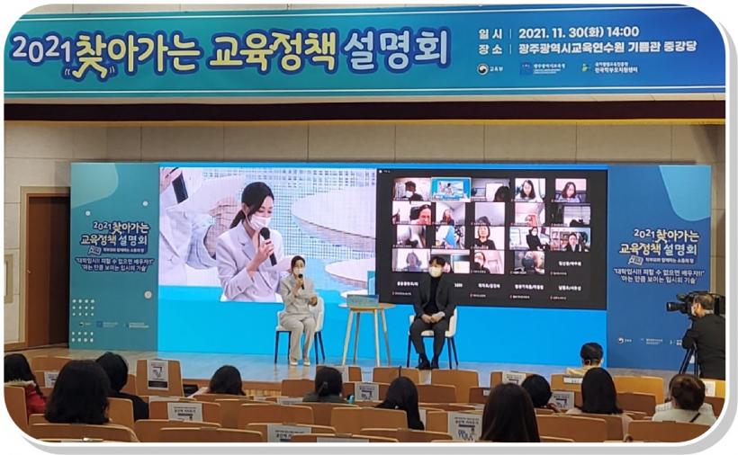 [°ø°£´º½º = ±è¼ö±Ù±âÀÚ] ±¤Áֽñ³À°Ã»ÀÌ 30ÀÏ ±¤ÁÖ±³À°¿¬¼ö¿ø Áß°´ç¿¡¼ Çкθð µîÀ» ´ë»óÀ¸·Î ¡®2021 ã¾Æ°¡´Â ±³À°Á¤Ã¥ ¼³¸íȸ¡¯¸¦ ½Ç½ÃÇß´Ù.