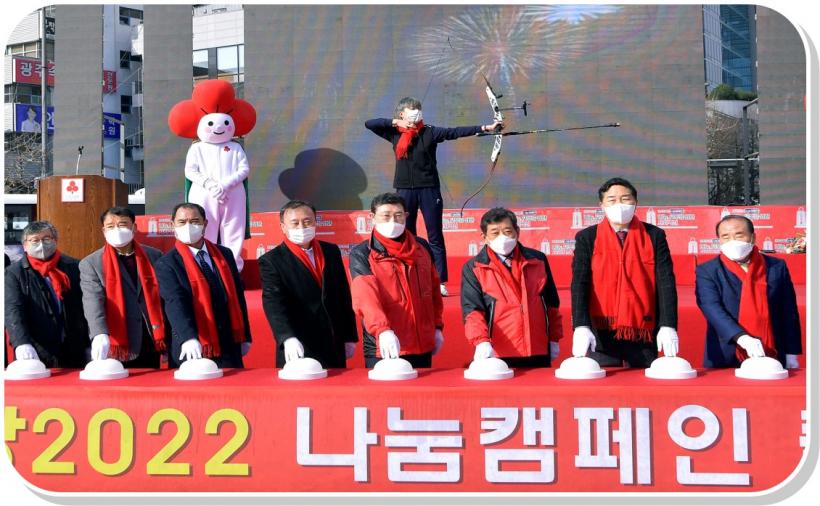 À̿뼷 ±¤ÁÖ±¤¿ª½ÃÀåÀÌ 1ÀÏ ¿ÀÀü µ¿±¸ ±¹¸³¾Æ½Ã¾Æ¹®ÈÀü´ç ¾Õ ±¤Àå¿¡¼ ¿¸° 'Èñ¸Á 2022 ³ª´®Ä·ÆäÀÎ' Ãâ¹ü½Ä¿¡ Âü¼®ÇØ ±è¿ëÁý ±¤ÁÖ½ÃÀÇȸ ÀÇÀå, ÀåÈÖ±¹ ±¤Áֽñ³À°°¨, ÇÑ»ó¿ø ±¤ÁÖ»çȸº¹Áö°øµ¿¸ð±ÝȸÀå µî ³»ºóµé°ú ¾ç±Ã ±¹°¡´ëÇ¥ ¾È»ê ¼±¼öÀÇ »ç¶ûÀÇ ¿Âµµ ¿Ã¸®±â Ȱ½ÃÀ§ ÆÛÆ÷¸Õ½º¸¦ ¹è°æÀ¸·Î ¸ð±ÝÄ·ÆäÀÎ ½ÃÀÛ ¹öưÀ» ´©¸£°í ÀÖ´Ù.