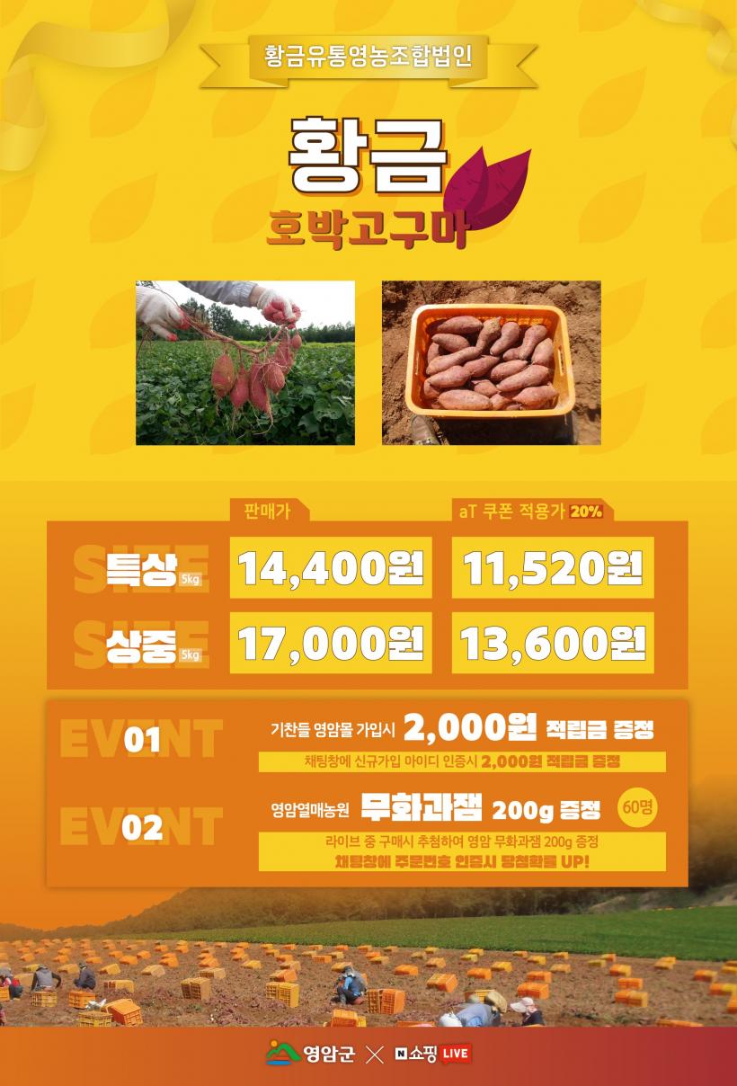 »óǰ±¸¼ºÀº Ȳ±ÝÈ£¹Ú°í±¸¸¶ Ư»ó 5kg 11,520¿ø, »óÁß 5kg 13,600¿øÀ¸·Î ½ÃÁߺ¸´Ù ÃÖ´ë 45% ÇÒÀÎµÈ Àú·ÅÇÑ °¡°Ý¿¡ ÆÇ¸ÅÇÑ´Ù.