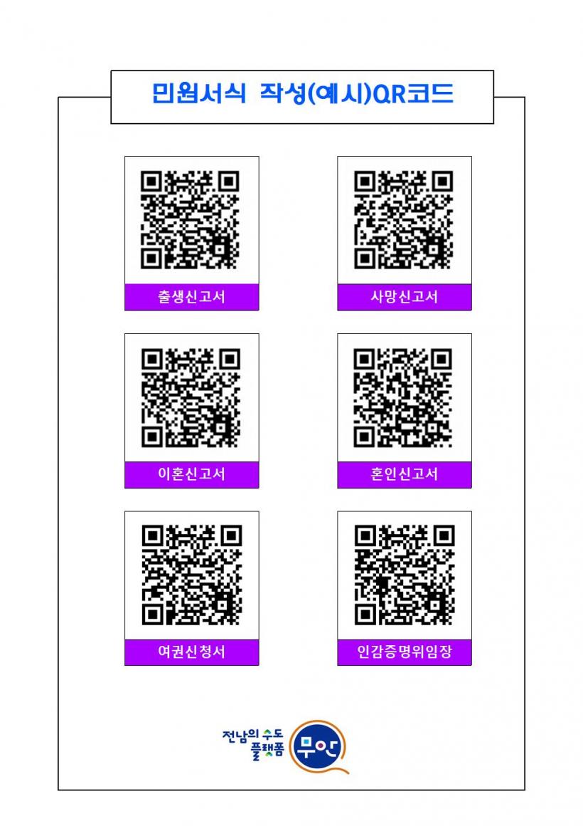 [°ø°£´º½º = ±è¿ëÁø±âÀÚ] ¹«¾È±ºÀº °¢ À¾¸é»ç¹«¼Ò¿Í ³²¾ÇÃâÀå¼Ò¸¦ ¹æ¹®ÇÑ ¹Î¿øÀεéÀÌ ½±°Ô ¹Î¿ø¼½ÄÀ» ÀÛ¼º ÇÒ ¼ö ÀÖµµ·Ï ¹Î¿ø¼½Ä ÀÛ¼º ¿¹½Ã¸¦ QRÄÚµå·Î Á¦ÀÛÇØ ¹Î¿øÀÎÀÇ ºÒÆíÀ» ÇØ¼ÒÇß´Ù°í ¹àÇû´Ù