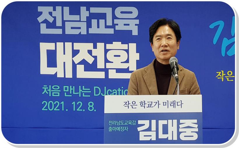 [°ø°£´º½º = ±è¼ö±Ù±âÀÚ] Àü¶ó³²µµ±³À°°¨ Ã⸶¸¦ ¼±¾ðÇÑ ±è´ëÁß Àü³²±³À°ÀÚÄ¡Ç÷§Æû ´ëÇ¥°¡ ù ¹øÂ° °ø¾à ¹ßǥȸ¸¦ °®°í, ¡°¹Ì·¡±³À°À¸·Î ÀÛÀº Çб³¸¦ »ì¸®°í Áö¿ª¼Ò¸êµµ ¸·°Ú´Ù¡±°í ¹àÇû´Ù. ±âÀÚȸ°ßÀº 12¿ù 8ÀÏ ¿ÀÀü 11½Ã Àü³²µµ±³À°Ã» ±âÀڽǿ¡¼ ¿·È´Ù.