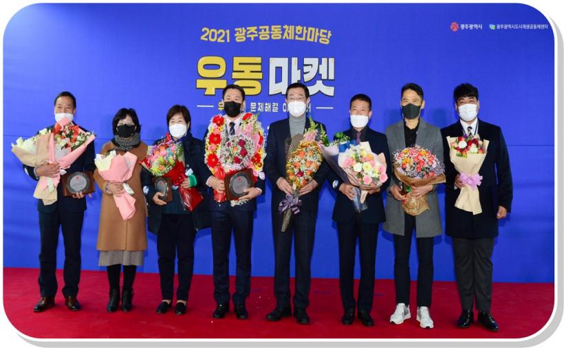 | À̿뼷 ±¤ÁÖ±¤¿ª½ÃÀåÀÌ 8ÀÏ ¿ÀÀü ºÏ±¸ ±¤ÁÖºñ¿£³¯·¹Àü½Ã°ü¿¡¼ ¿¸° '2021 ±¤ÁÖ°øµ¿Ã¼ ÇѸ¶´ç' °³¸·½Ä¿¡ Âü¼®ÇØ ¸¶À»°øµ¿Ã¼ Ȱ¼ºÈ °ø·ÎÀÚ¿¡°Ô ǥâÀåÀ» ¼ö¿©ÇÑ µÚ ±â³äÃÔ¿µÀ» Çϰí ÀÖ´Ù. |