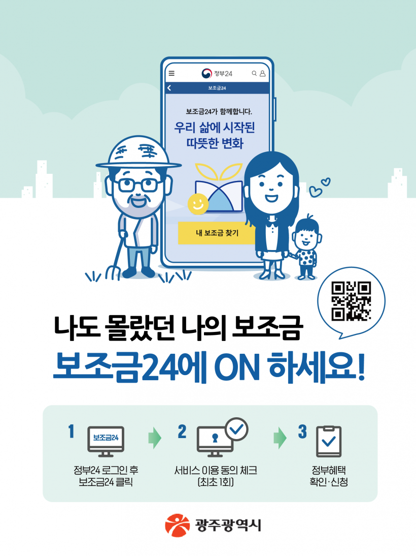 [°ø°£´º½º = ±è¼ö±Ù±âÀÚ] ±¤ÁÖ±¤¿ª½Ã´Â Á¤ºÎ¿Í ÁöÀÚü°¡ Á¦°øÇÏ´Â °¢Á¾ ÇýÅÃÀ» È®ÀÎÇÒ ¼ö ÀÖ´Â ¡®º¸Á¶±Ý24¡¯ ¼ºñ½º Á¦°ø ¼º°úÆò°¡¿¡¼ ¿ì¼ö±â°ü¿¡ ¼±Á¤µÆ´Ù.