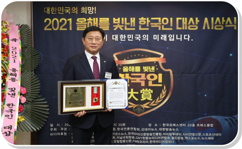 [°ø°£´º½º = ±è¼ö±Ù±âÀÚ] Àü¶ó³²µµÀÇȸ ±èÇÑÁ¾ ÀÇÀåÀÌ 17ÀÏ Çѱ¹ÇÁ·¹½º¼¾ÅÍ¿¡¼ ¿¸° 2021 ¿ÃÇØ¸¦ ºû³½ Çѱ¹ÀÎ ´ë»ó ½Ã»ó½Ä¿¡¼ ¡®ÀÇÁ¤Çõ½Å ºÎ¹® ´ë»ó¡¯À» ¼ö»óÇß´Ù.
