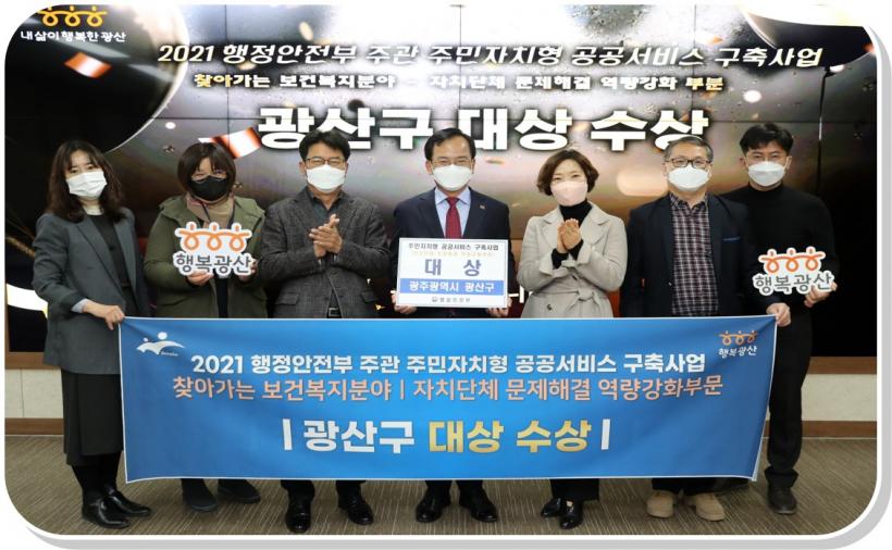[°ø°£´º½º = ±è´ë¿µ±âÀÚ] ±¤ÁÖ ±¤»ê±¸(±¸Ã»Àå ±è»ïÈ£)´Â ÇàÁ¤¾ÈÀüºÎÀÇ 2021³â ÁÖ¹ÎÀÚÄ¡Çü °ø°ø¼ºñ½º ±¸Ãà»ç¾÷ ã¾Æ°¡´Â º¸°Çº¹ÁöºÐ¾ß ¿ì¼ö»ç·Ê °æÁø´ëȸ¿¡¼ ´ë»ó¿¡ ¼±Á¤µÅ ÇàÁ¤¾ÈÀüºÎ Àå°ü ±â°ü ǥâÀ» ¹Þ¾Ò´Ù°í ¹àÇû´Ù.