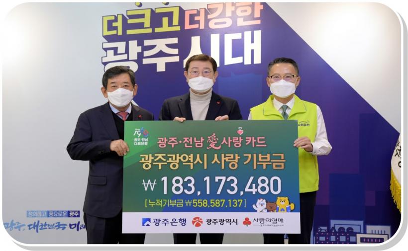 ±¤ÁÖÀºÇàÀº 2018³â 5900¸¸¿ø, 2019³â 1¾ï5100¸¸¿ø, 2020³â 1¾ï6400¸¸¿ø µî 4³â° ¡®±¤ÁÖ¡¤Àü³²äñ»ç¶ûÄ«µå¡¯ÀÇ °íÇâ»ç¶û ±âºÎ±ÝÀ» Àü´ÞÇϰí ÀÖ´Ù.