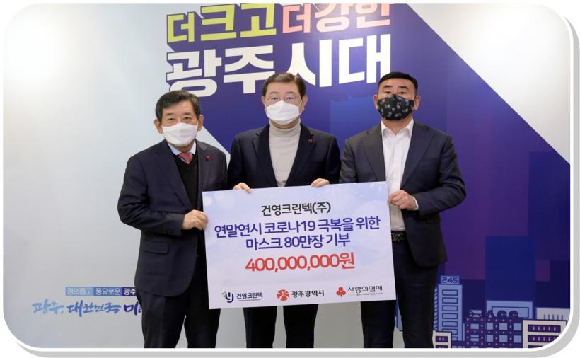 ¸ÕÀú (À¯)°Ç¿µÅ©¸°ÅØÀº Äڷγª19 Àå±âÈ¿¡ µû¸¥ À§±â±Øº¹À» À§ÇØ ¸¶½ºÅ© 80¸¸ÀåÀ» ±âºÎÇß´Ù. ¸¶½ºÅ©´Â ±¤ÁÖ»çȸº¹Áö°øµ¿¸ð±Ýȸ¸¦ ÅëÇØ ±¤ÁÖÀå¾ÖÀκ¹Áö°ü ¹× ³ëÀκ¹ÁöÇùȸ ¼Ò¼Ó ½Ã¼³ µî 100¿© °³¼Ò¿¡ Àü´ÞµÉ ¿¹Á¤ÀÌ´Ù.
