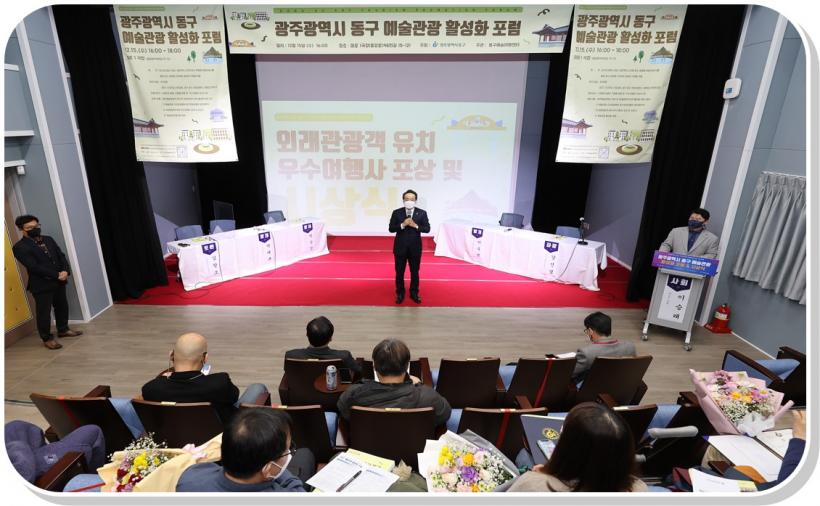 ¡®±¤ÁÖ µ¿±¸ ¿¹¼ú°ü±¤ °¡´É¼º ³íÀÇ ¹× °ü±¤°´ À¯Ä¡ Ȱ¼ºÈ ¹æ¾È¡¯À» ÁÖÁ¦·Î ¿¸° À̹ø Æ÷·³Àº ¿¹¼ú°ü±¤ ½ºÅ¸Æ®¾÷ 7°³¼Ò¿Í µ¿±¸ Àü´ã¿©Çà»ç 18°³¼Ò, ¿©Çà¾÷ °ü°èÀÚ µîÀÌ Âü¼®ÇÑ °¡¿îµ¥ À¯Æ©ºê ½Ç½Ã°£ »ý¹æ¼Û µî ¿Â¡¤¿ÀÇÁ¶óÀÎÀ¸·Î µ¿½Ã¿¡ ÁøÇàµÆ´Ù.