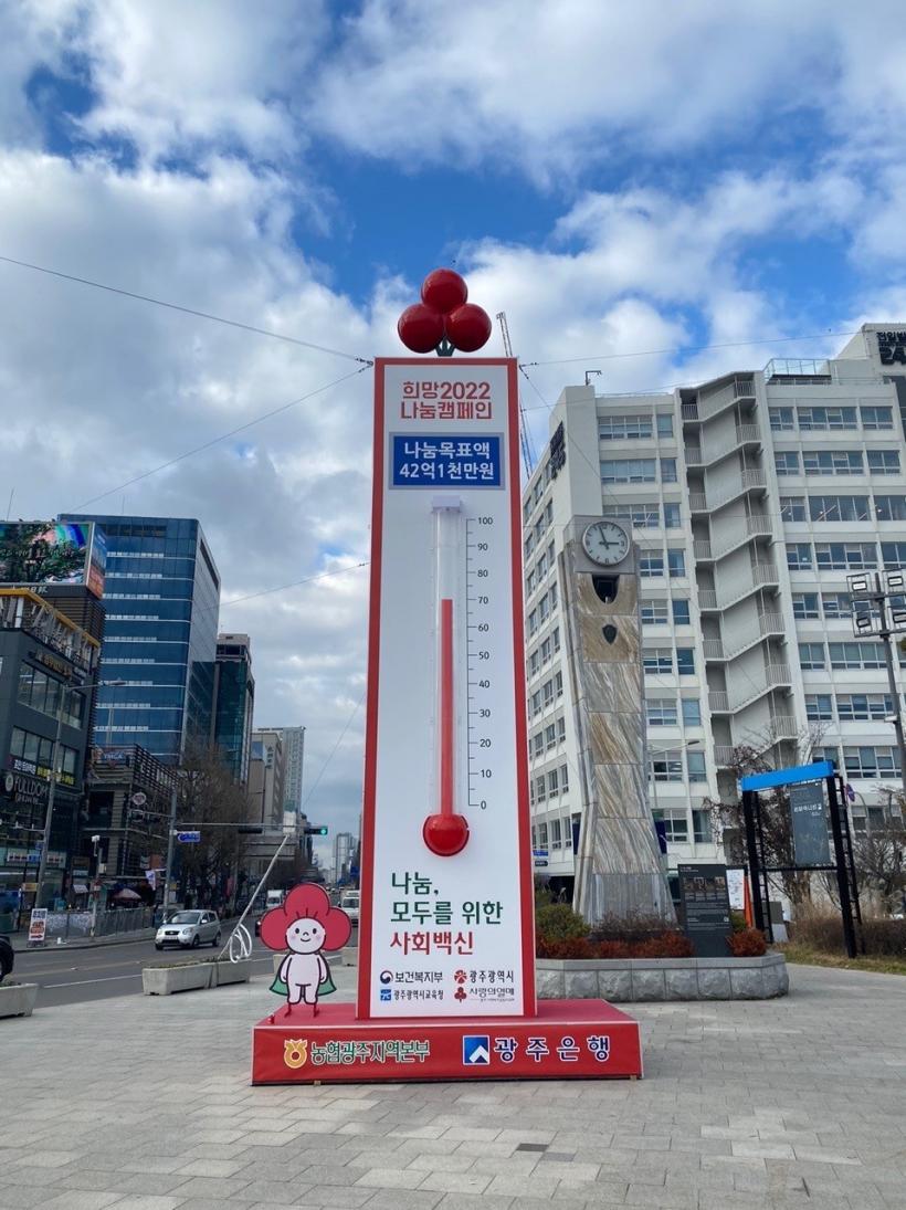 [°ø°£´º½º = ±è¼ö±Ù±âÀÚ] ±¤ÁÖ±¤¿ª½Ã¿Í ±¤ÁÖ»çȸº¹Áö°øµ¿¸ð±Ýȸ°¡ Áö³ 1ÀϺÎÅÍ ½ÃÀÛÇÑ ¡®Èñ¸Á2022 ³ª´®Ä·ÆäÀΡ¯ ¸ð±Ý¾×ÀÌ 30ÀÏ ±âÁØ 35¾ï1200¸¸¿øÀ» ±â·ÏÇÏ¸ç »ç¶ûÀÇ ¿ÂµµÅ¾ ¼öÀºÁÖ°¡ 83.4µµ·Î ¿Ã¶ú´Ù.
