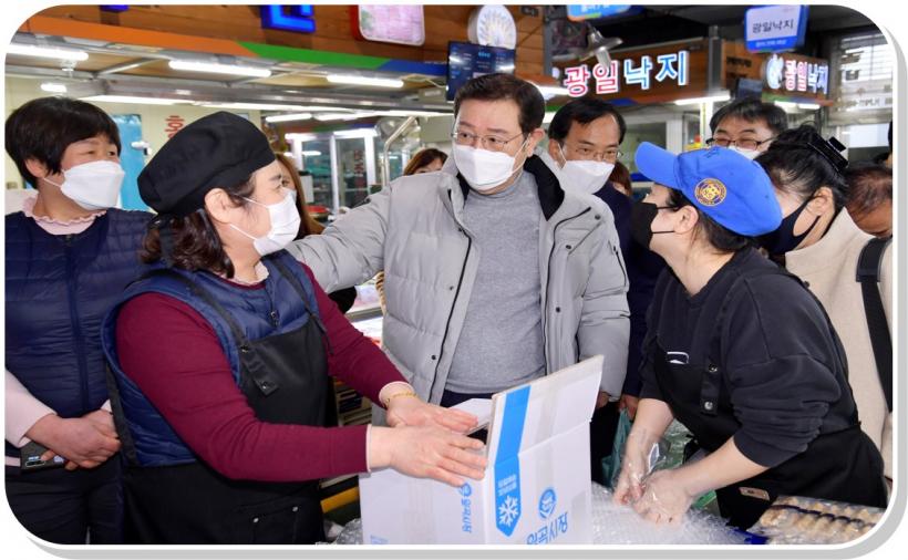 [°ø°£´º½º = ±è¼ö±Ù±âÀÚ] À̿뼷 ±¤ÁÖ±¤¿ª½ÃÀåÀº 2022³â ÀÓÀγ⠻õÇØ¸¦ ¸Â¾Æ 3ÀÏ ÀüÅë½ÃÀå°ú Àå¾ÖÀκ¹Áö°üÀ» Â÷·Ê·Î ¹æ¹®ÇØ Äڷγª19¿Í ÇÑÆÄ·Î ¾î·Á¿òÀ» °Þ°í ÀÖ´Â »óÀεé°ú Àå¾Ö½Ã¼³ °ü°èÀÚµéÀ» °Ý·ÁÇÏ°í ¾Ö·Î»çÇ×À» ûÃëÇß´Ù.