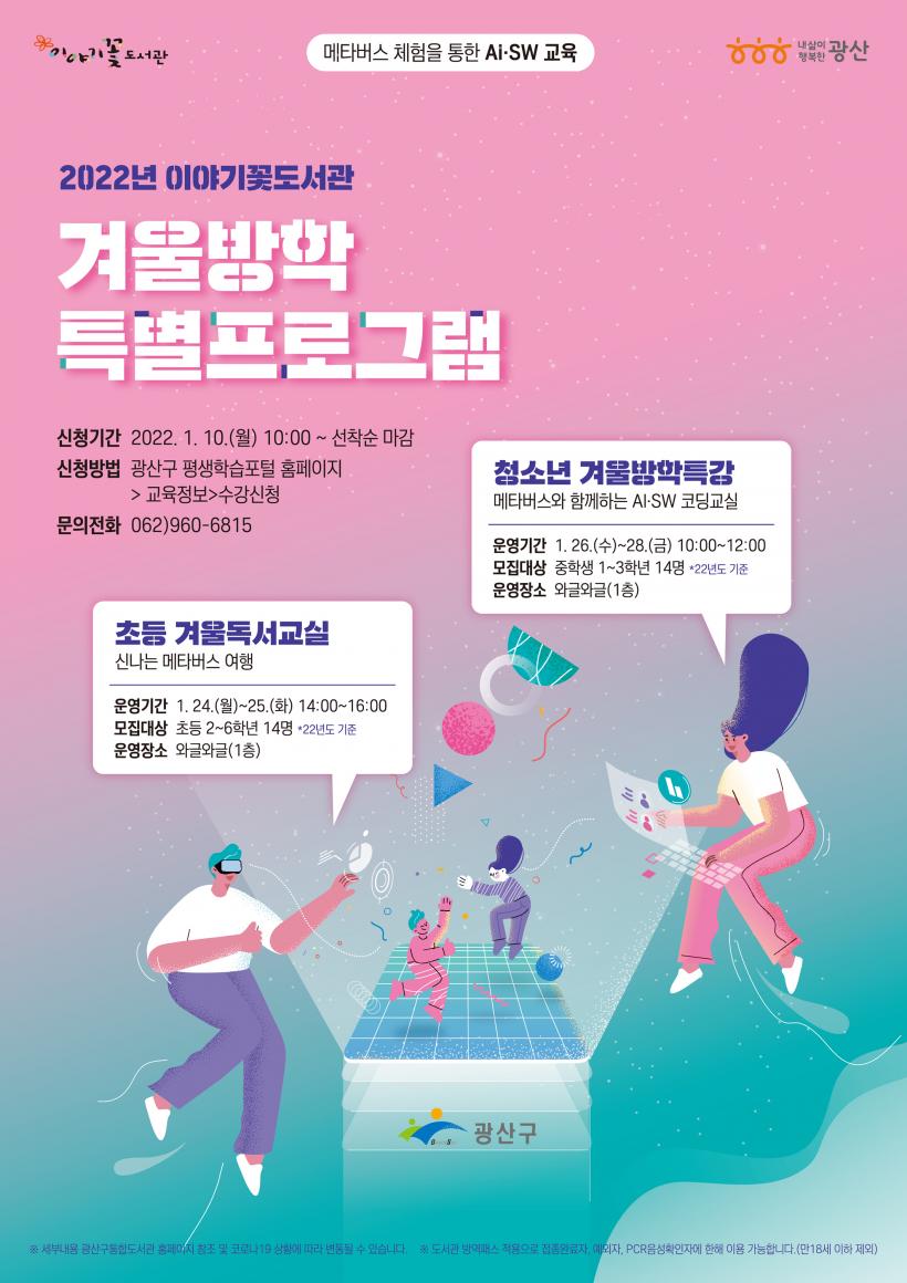 ¿À´Â 24~25ÀÏ¿¡´Â ÃʵîÇлý ´ë»ó °Ü¿ï µ¶¼±³½Ç ¡®½Å³ª´Â ¸ÞŸ¹ö½º ¿©Ç࡯, 26~28ÀÏ¿¡´Â û¼Ò³â ´ë»ó °Ü¿ï¹æÇÐÆ¯° ¡®¸ÞŸ¹ö½º¿Í ÇÔ²²ÇÏ´Â AI¡¤SW ÄÚµù±³½Ç¡¯À» ¿î¿µÇÒ ¿¹Á¤ÀÌ´Ù.